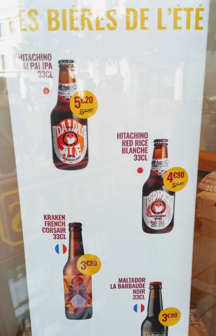 アヴィニョンの目抜き通りをぶらぶら。ふと日本国旗が目に入ったと思ったら、見たことのないビールがショーウィンドウに。